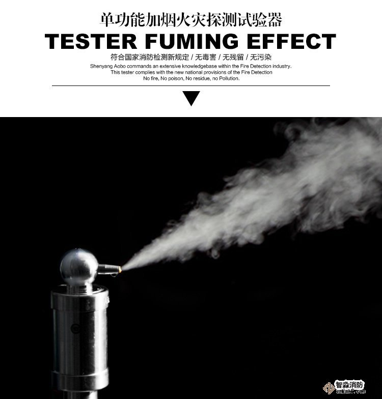 該產品由于采用特制的霧香液電子霧化技術,發(fā)出的煙霧有各種香味且綠色環(huán)保,無毒無害。根據(jù)火災探測器倒掛在頂棚上的狀況,為避免加煙后煙霧長時間滯留在火災探測器迷宮內,特制霧香液霧化成煙后的比重大于空氣比重,加煙試驗后短時間內能在迷宮內快速消失,有利于提高試驗工作效率。電子霧化發(fā)煙代替原有的傳統(tǒng)的棒香加煙方式,不僅加煙方式有了進一步的升華而且煙霧中不含煙塵煙油,可避免棒香加煙所產生的煙塵煙油對火災探測器造成二次污染。同時由于該產品采用了內部霧香液循環(huán)技術,降低霧香液的自然損耗,延長了霧香液使用時間,耗材使用成本隨之減少。