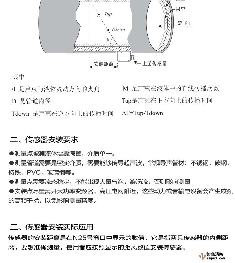 超聲波在流動的流體中傳播時就載上流體流速的信息。因此通過接收到的超聲波就可以檢測出流體的流速,從而換算成流量,圖1。