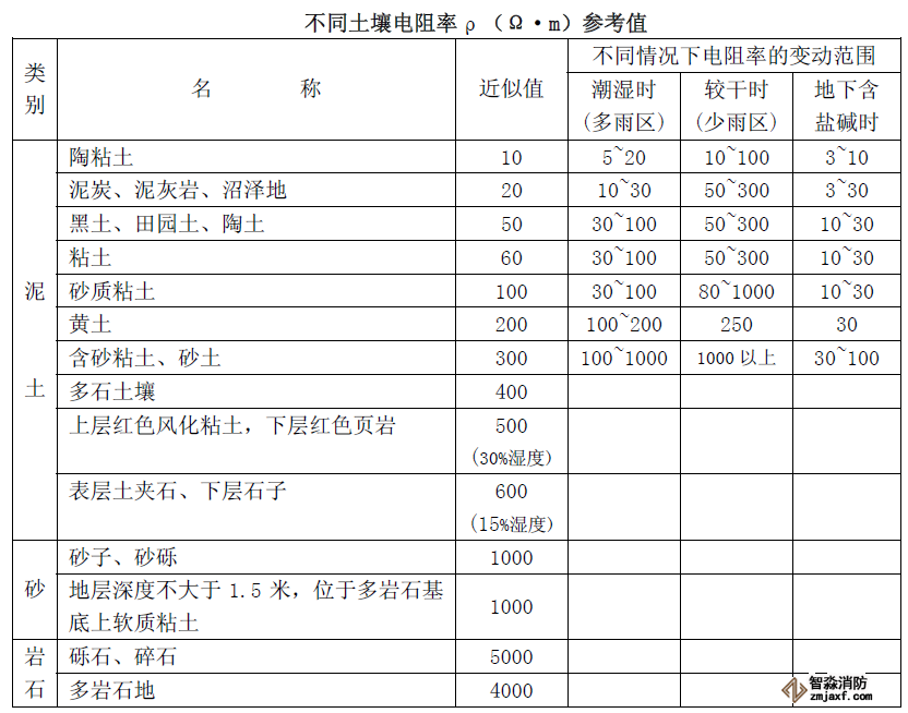 本案例測試的為沙質(zhì)粘土,附土壤電阻率參考值: