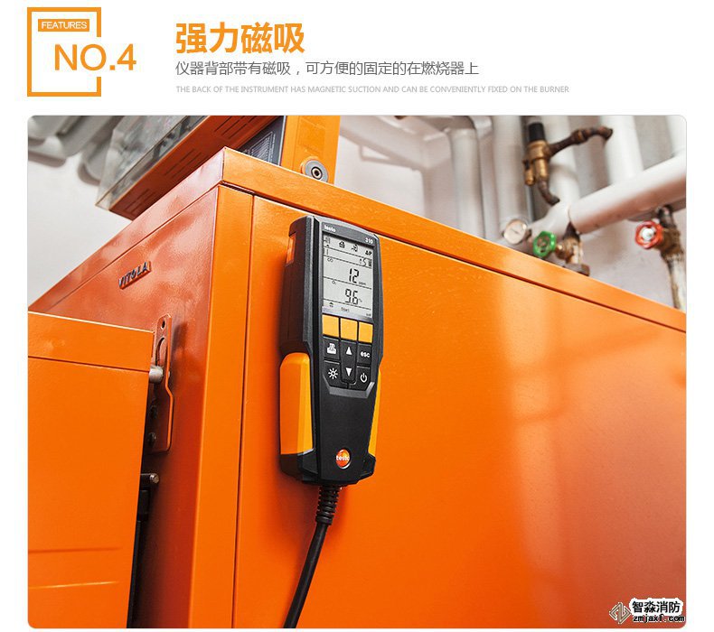 不僅如此,該手持式煙氣分析儀還具有多項(xiàng)其它實(shí)用特性。儀器背部帶有磁吸,可吸附于所有金屬表面,比如燃燒器外殼,方便您騰出雙手處理其他事務(wù)。傳感器自動調(diào)零,僅需30秒,過濾芯更換極其簡便。與此同時,testo 310輕便、堅固且耐用,防塵防撞擊,內(nèi)置冷凝槽可快速簡便的清空。